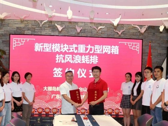 2024年7月26日,大襟岛蚝业科技(台山)有限公司与广东南风王科技有限公司宣布了一项重要的合作成果并成功签约,共同推进中国首家自主研发的新型模块式重力型网箱抗风浪蚝排项目成功落地。此次大襟岛蚝业科技与南风王科技的合作,不仅是对海洋养殖技术的一次重要探索,更是对我国海洋经济持续发展的一次有力推动。